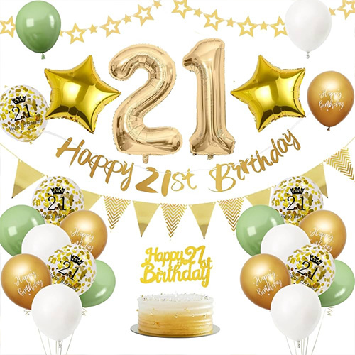 21. lufi készlet: Ez a 21. léggömbkészlet latex lufiból, fólia lufiból, születésnapi zászlókból és egyéb kiegészítőkből áll. Könnyen összeszerelhető, és ünnepélyesebbé teheti a 21. születésnapi partiját. Egy ilyen kiváló minőségű és lenyűgöző beállítás segít feldobni a 21. születésnapja estéjét, és ezt a pillanatot olyan értékes pillanattá varázsolni, amelyet lánya, önmaga és az egész család soha nem fog elfelejteni.