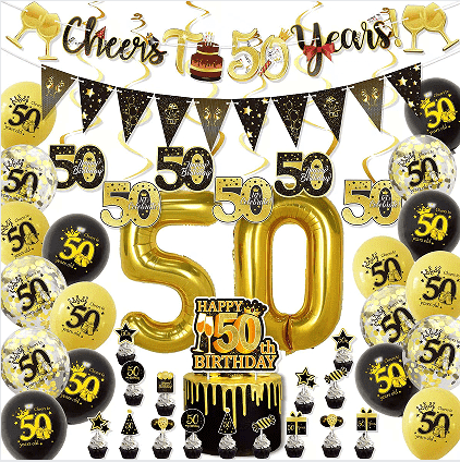 Az 50. születésnapi léggömb exkluzív dekoráció az élet fontos pillanatainak megünneplésére, beleértve a legkülönbözőbb stílusú és divatos színű lufi elemeket is, és személyre szabható 50 éves tematikus szavakkal, születésnapi üzenetekkel vagy exkluzív emlékmintákkal. Kiváló minőségű latex és élelmiszer-minőségű alumíniumfólia anyagból, tartóhéliumból, levegővel felfújható, biztonságos és tartós. A személyre szabott 50. születésnapi léggömbkészlet tartozékai között megtalálható a téma papír születésnapi transzparens, papírkártya-beillesztés, akasztópörgetés, egyedi hátterek, terítő és eldobható edénykészlet. A rugalmas léggömb-kombináció és a kiegészítő termékek összeillesztése alkalmas különféle helyszínekre, mint például családi születésnapi bankett, régi baráti összejövetel, vállalati évforduló megünneplése, éttermi helyszín elrendezése stb.