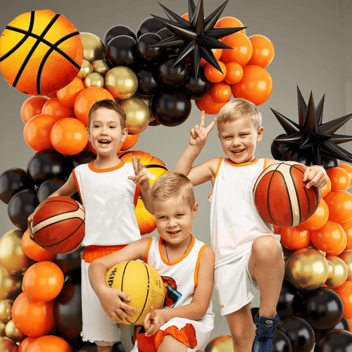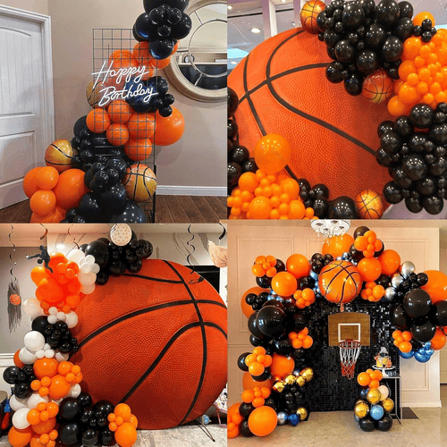 A kosárlabda ballon füzérkészlet a sportszellem jelképe. Több latex léggömb és több fólia léggömb tartozik hozzá. A kosárlabda témához hasonlóan ennek a készletnek a színei főként narancssárga és fekete, és a különböző rétegek kialakításához afémes arany latex léggömbökis hozzáadódnak. Teljes stílusa nagyon vonzó, azonnal feldobhatja a buli hangulatát.