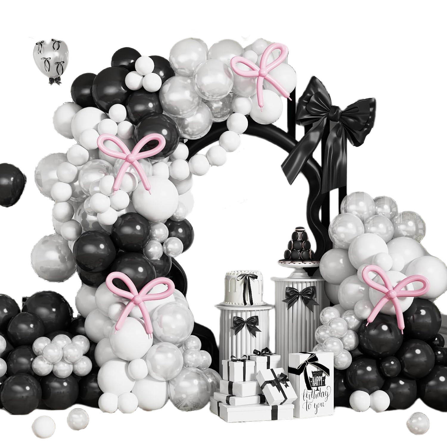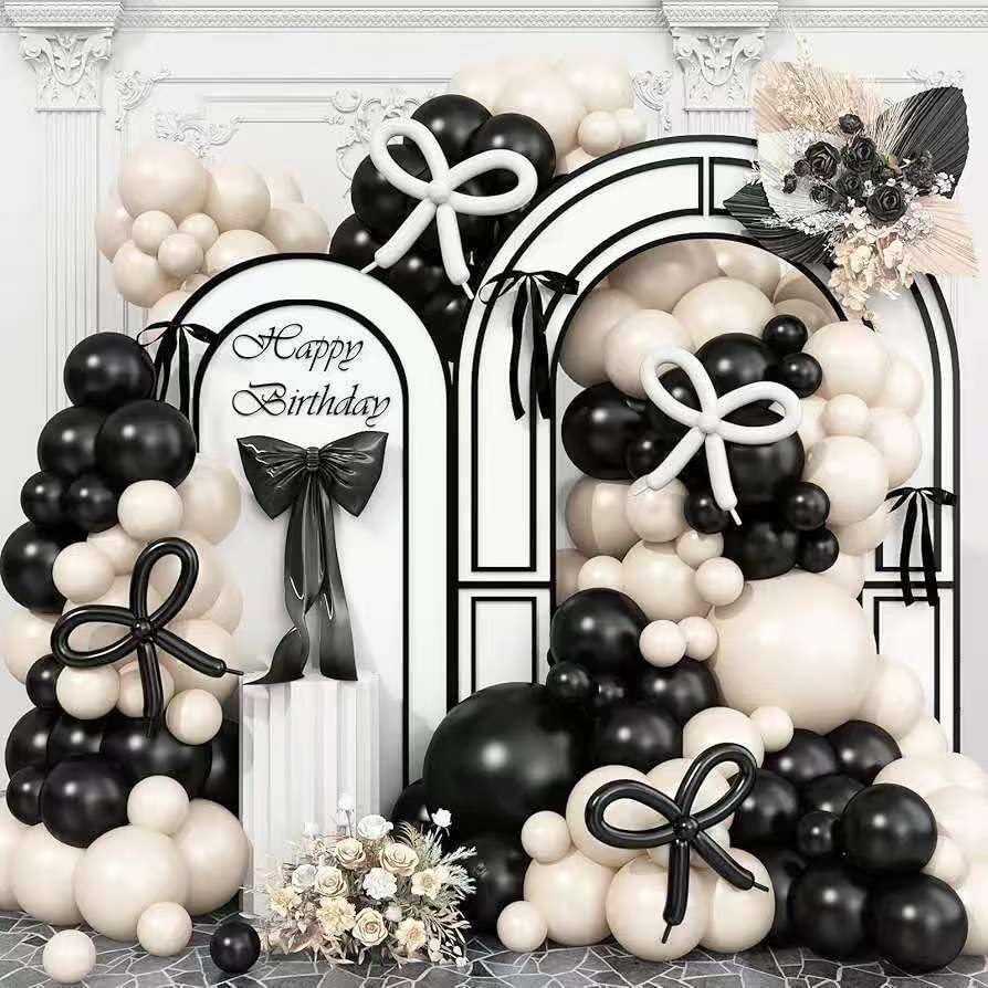 Ez a Bow Balloon Arch Garland jelenleg különféle léggömb színű. A legújabb fehér és fekete léggömb arch Garland népszerű választás az ügyfelek körében, mivel ez a legnépszerűbb szín. A fehér és fekete ballon koszorúív szett gyönyörűen párosul boldog születésnapot. Az íj -ékezetek javítják a születésnapi party balloon ívkészletét, és egy kis szikrát és varázst adnak a partijához.