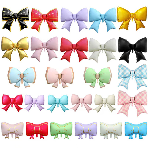 Ezek az íjfólia léggömbök megváltoztatják a klasszikus csokornyakkötést. Néhányuknak szalagja van egy görbével vagy felosztással. Néhányan üreges kialakítást mutatnak. A stílus frissnek és különlegesnek tűnik. Művészeti jellegű érzést hoznak. Bármely parti beállításban lesznek a legfontosabb események.