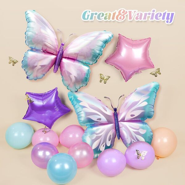 A pillangó stílus évek óta nagyon népszerű. A romantikát és a szabadságot képviseli. Felnőtteket és gyerekeket egyaránt vonz a pillangóstílus. Sokan azt remélik, hogy ezt a pillangós léggömbfüzér készletet a születésnapi bulikon használhatják. Ezenkívül használhatja esküvőkön, ünnepeken, babavárásokon és bármilyen évfordulón.