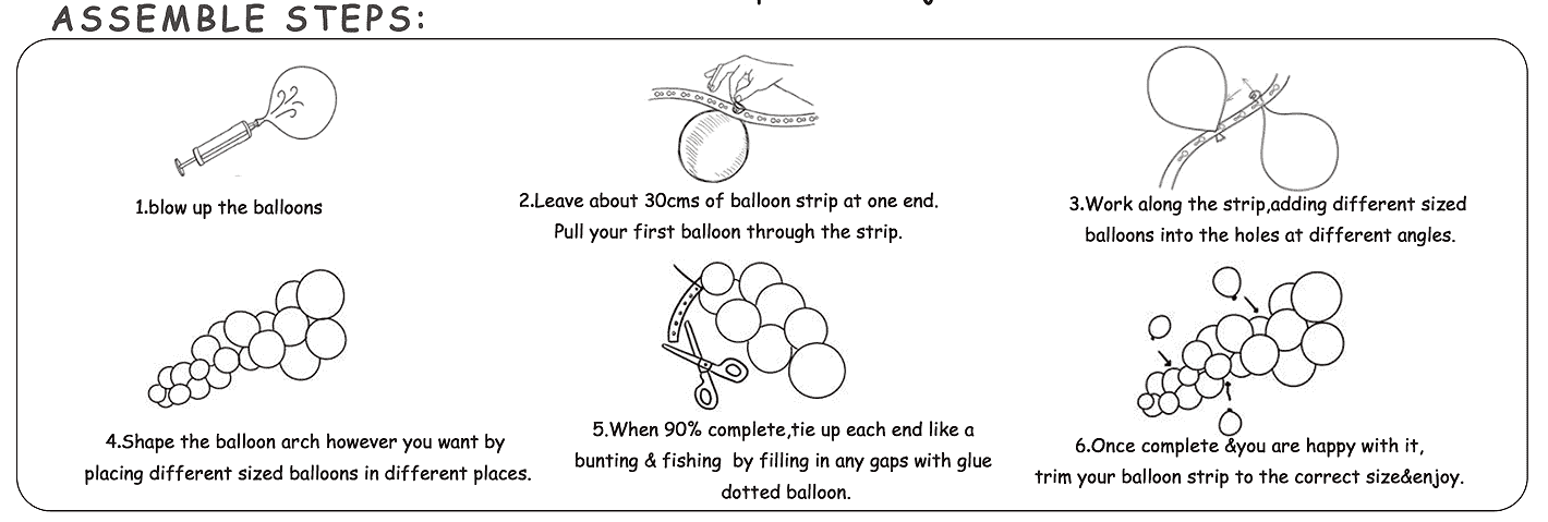 A készlet teljes anyagkészletet tartalmaz, mint például léggömbök, léggömbláncok, ragasztópontok, kiegészítők, stb. A vevők összeállíthatják, amikor megkapják, további párosítás nélkül. Nagyon versenyképes saját használatra és kiskereskedelemre.