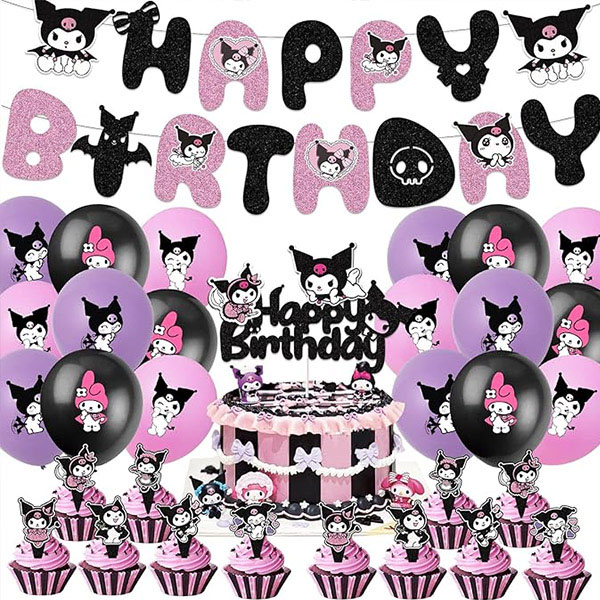Bemutattuk a Kuromi nyomtatott léggömböt is, amely természetes latex anyagból készül, környezetbarát és szennyezésmentes, és nem kell aggódnia a felrobbanás miatt, amikor héliummal vagy levegővel felfújják. Ez a Kuromi mintával nyomtatott latex ballon különféle partiellátásokkal használható, a léggömbök számát a jelenet méretének megfelelően beállítva.Gondosan megterveztünk különféle csomagokat Kuromi témájú nyomtatott léggömbökkel. Ezek a csomagok magukban foglalják a háromdimenziós Kuromi fóliablunokat, a Boldog születésnapi fóliablunokat, a 18 hüvelykes szív alakú léggömböket, a 18 hüvelykes kerek fóliaglunokat és a Kuromi-témájú boldog születésnapi zászlókat. Az összes dekoráció kiváló minőségű anyagokból, élénk színekből, szép mintákból, vastag textúrából készül, nem könnyű megsérülni, hogy az esemény ünneplése során a tökéletes állapot fenntartása érdekében.