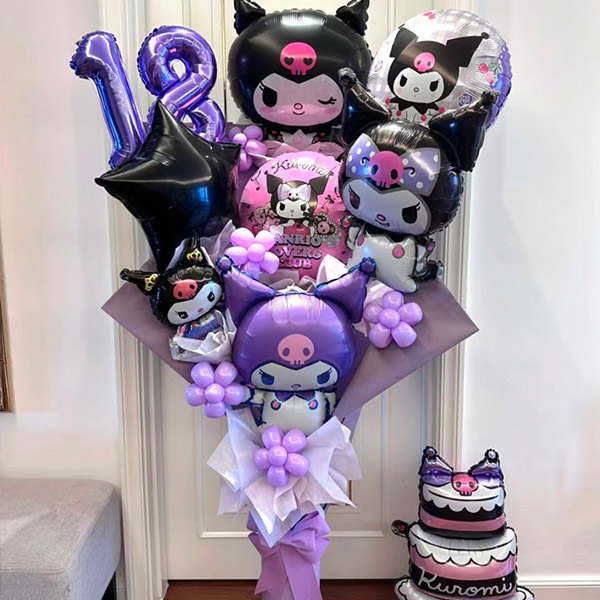 A Kuromi egy nyúlon alapuló rajzfilmfigura, fekete fejkendőt és rózsaszín koponya logót visel a homlokán. A gyermekek szerették a világ minden tájáról. Ez a rajzfilm Kuromi fólia -ballonkészlet fekete, lila és rózsaszín egyezéshez használja, ami titokzatos és kedves légkört teremtett Kuromi klasszikus színeivel. A készlet különféle formájú fóliagépgömböket tartalmaz, beleértve a Kuromi rajzfilm nagyfejű léggömbjét, 18 hüvelykes fóliabólót és 18 hüvelykes kerek fóliaggömböt, Kuromi mintával nyomtatva. Ez a csomagkészlet kicsi és finom, alkalmas kisgyermekek születésnapi partijaira, a Kulomi témájú születésnapi partikra, nemcsak a kiemelkedő vizuális effektusokra, hanem jó rugalmassággal és tartóssággal is, nem könnyű károsítani.