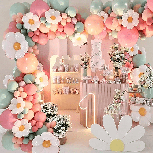 A sokrétű felhasználási lehetőség mellett a százszorszép léggömbfüzér nem csak lányok és női születésnapok első születésnapi dekorációjára alkalmas, hanem bohém százszorszép babakeresztelő dekorációra, két divatos parti dekorációra, esküvőkre, menyasszonyi zuhanyokra stb.