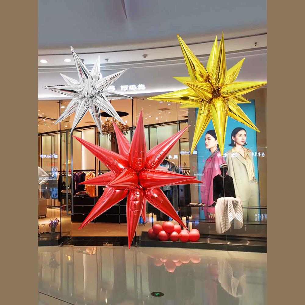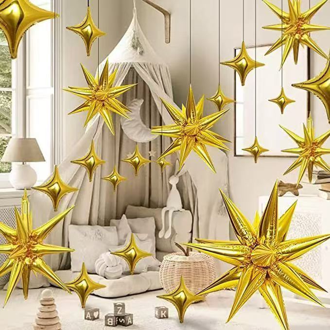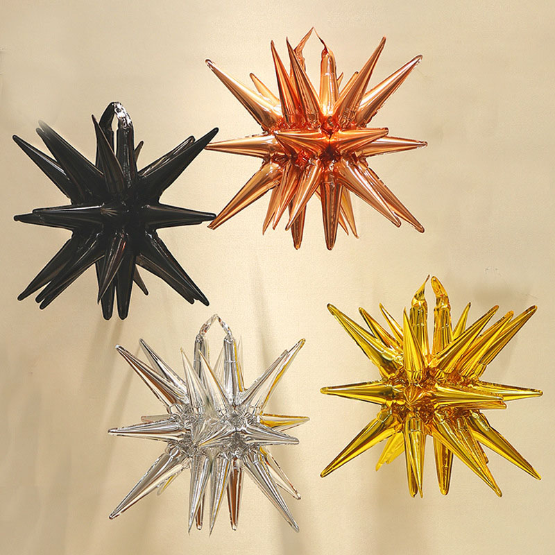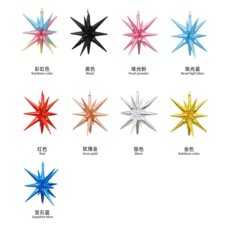Egyrészes felrobbantó csillagfóli léggömbök: Két méretben kapható: 22 hüvelyk és 27 hüvelyk. A 22 hüvelykes méret kisebb és alkalmas hálószobákra és irodákra, így tökéletes a születésnapi dekorációhoz. A 27 hüvelykes méret jobban alkalmas nagyobb terekhez, például a bankettcsarnokokhoz és a bevásárlóközpontok ablakaihoz. Még akkor is, ha magasan lógott, a minta jól látható.