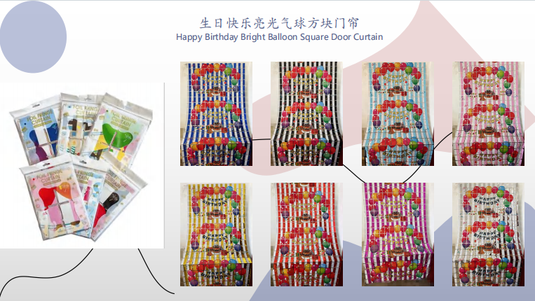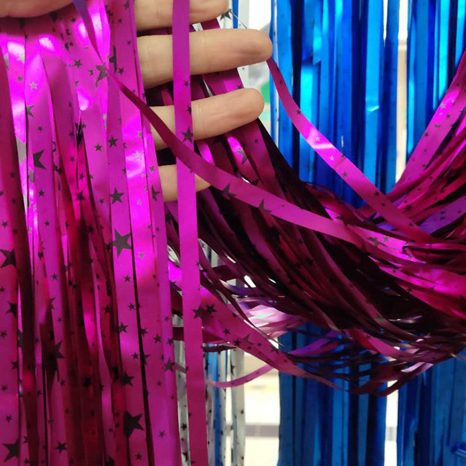 A szivárványszínekkel, a macaroon színekkel és más színkombinációkkal rendelkező fóliafüggöny alkalmas a gyermekek születésnapi partijaira. Vannak olyan fényes fóliafüggönyök is, mint például az arany és az ezüst, amelyek felnőtt születésnapi partikhoz, évforduló ünnepségekhez, stb. Rendelkezésre állnak.