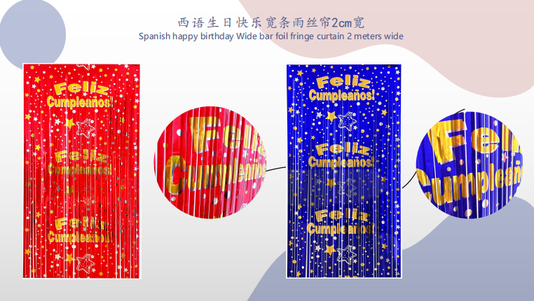 A fóliafüggöny egyfajta dekoratív party kellék, amelyet gyakran használnak a háttér elrendezésének mindenféle ünneplési tevékenységében. Az alábbiakban látható a termékleírás