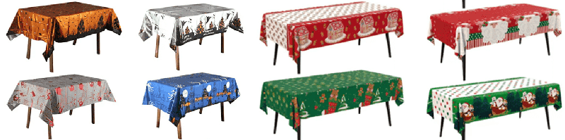 Otthonok, bevásárlóközpontok, bárok, éttermek ünnepi asztali dekorációjára például a karácsonyi témájú piros és zöld színpárosítás, a karácsonyfa- és hópehely mintás fóliaterítő, a halloween-téma fekete és narancssárga színpárosítása sütőtök és denevér mintával, a tavaszi fesztivál piros és arany színpárosítása szerencsés karakterekkel és lámpás mintával használható.
