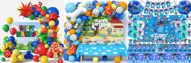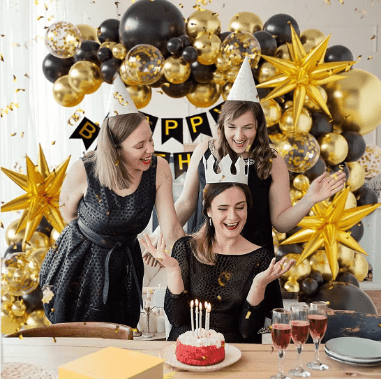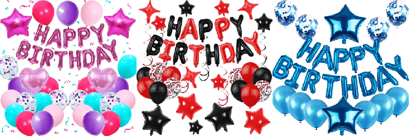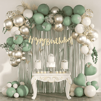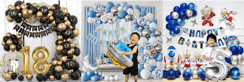 Az alapstílus egy Happy Birthday latex lufi azonos vagy kiegészítő színben, veleBoldog születésnapot levél fólia lufivagyszámú fólia lufi. A klasszikus fazonok Macaroon púderzselé lufi rózsaszín Happy Birthday fólia lufi, fekete latex lufi arany számú fólia lufi. A latex léggömbök ballonláncba fűzhetők fel, és a falra vagy a mennyezetre akaszthatók, fólia lufikkal a vizuális központ, és kis mennyiségű szalagdíszítéssel, hogy gyorsan egyszerű és texturált parti hangulatot teremtsenek.