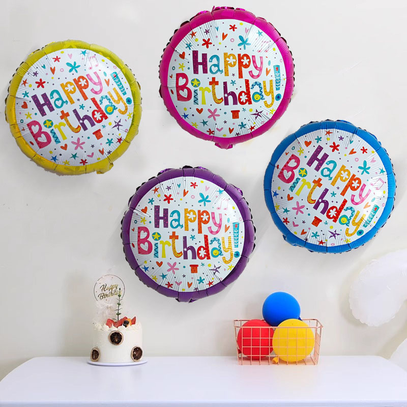 Happy Birthday party fólia lufiink elsősorban kerek angol és spanyol Happy Birthday party fólia lufikat és szabálytalan alakú Happy Birthday party fólia lufikat tartalmaznak. A kerek fóliás léggömbök elsősorban 18 hüvelykes méretűek, és többféle stílusban kaphatók. Importált, környezetbarát tintával nyomtatják, és magas hőmérsékletű melegbélyegzési eljárással rögzítik. Levegővel vagy héliummal felfújhatók, és nyomógombos szeleppel vannak felszerelve. Csomagonként 50 db Happy Birthday party fólia lufi tömeges rendelést kínálunk. és egyedileg csomagolva papírkártyákkal. Egyedi fóliás ballonos csomagoláshoz egyedi papírkártyák állnak rendelkezésre. Termékcsaládunkban OPP zacskók, papírkártyák, fólia lufi, szívószálak és szalagok találhatók.
