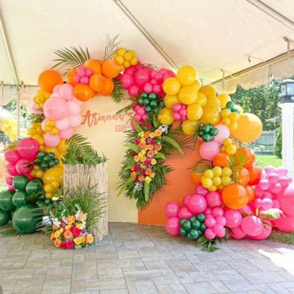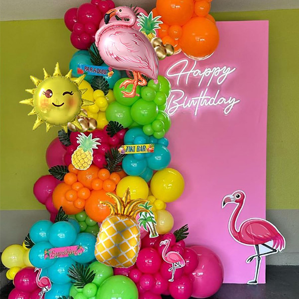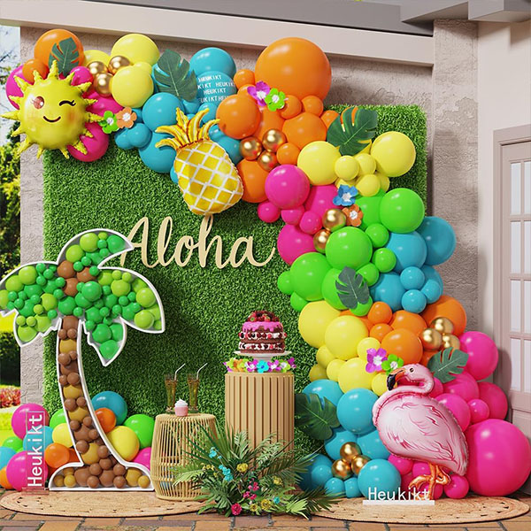 Testreszabhatjuk saját témájához, kiválasztva a saját egyedi színpalettáját. Például, ha hozzáad néhány retro témájú léggömböt, trópusi és ünnepi hangulatot varázsol a helyszínre, egy csillogást adva a Hawaii Balloon Garland Kithez.