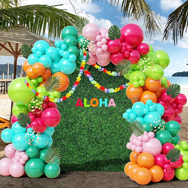 Ez a hawaii léggömbfüzér készlet színes latex léggömbökből készült. Az élénk színek tökéletessé teszik a gyermekek születésnapi bulikra. Különféle stílusban is elérhető. Az egyedi trópusi ballonív-készletek testreszabhatók és összeállíthatók a kívánt stílusnak megfelelően. Nyugodtan készítse el saját egyedi terveit, és kísérletezzen velük, hogy a következő eseménye teljes mértékben sikeres legyen.