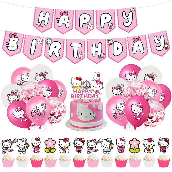 A Hello Kitty Balloon témájú party kellékek egy komplett dekorációs készletet tartalmaznak, amely az ünnepi bulikra szabott, segít gyorsan meleg, vidám és ünnepi hangulatot teremteni.