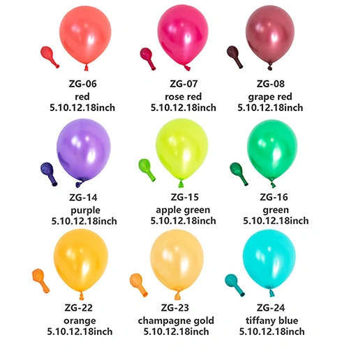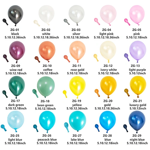 Latex ballonjainkat általában 5 hüvelykes, 10 hüvelykes, 12 hüvelykes, 18 hüvelykes és 36 hüvelykes méretben gyártják. Ha speciális igényei vannak, és testre kell szabni a léggömböket, más méretben is tudunk gyártást megoldani.