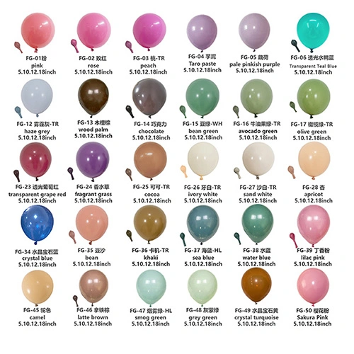 A latex léggömbök széles körben használt dekorációs és szórakoztató tárgyak. Ezek a léggömbök nagyon népszerűek különböző alkalmakkor, különböző színeik és felhasználási módjuk miatt. A matt vöröstől, sárgától, kéktől és zöldtől a retró rózsaszínig és liláig, majd az olyan fémes tónusokig, mint az arany és a rózsa, a kiváló minőségű léggömbök meglepő vizuális effektusokat hozhatnak létre, és megfelelnek a különféle forgatókönyvek igényeinek.