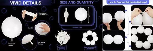 A Quick Link ballonjaink kiemelkednek az egyedi, teljes körű kialakításukkal, kiküszöbölve az eszközök igényét. A hagyományos léggömbökhöz képest az Advanced Link Balloon Csatlakozási folyamat egyszerűbb és gyorsabb, lehetővé téve a parti vagy az esemény helyszínének hatékonyabb díszítését.