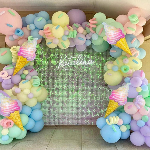 A Niun® Balloon Factory ingyenes ballon koszorú -ív testreszabási szolgáltatást nyújt. Csak mondja el nekünk a logó és a képtervezési koncepcióját, és létrehozunk egy macaroon fagylalt -ballon íves gömbcsomagot, amely az Önhöz tartozik. Professzionális tervezőcsapatunk optimalizálja és elkezdi a termelést, amíg az ügyfél elégedett.