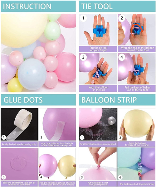 A macaroon fagylalt ballon íves koszorú készlet különféle színű és méretű latex léggömböket tartalmaz, maca -por, maca kék, maca -sárga, maka zöld és maka lila, valamint hosszú, különféle maka színű léggömböket és fóliafagylalt léggömböket. Miután ezeket a léggömböket felfújják, ballonláncokon, ragasztópontokon és szalagokon keresztül összeszerelik őket, hogy elkészítsék a gyönyörű macaroon fagylaltbolt -ív -koszorúkat. A színes macaroon ballon ív koszorúját kifejezetten a partira vagy az eseményre lehet megtervezni. Tökéletes választás a szabadtéri partik, iskolai partik, vállalati vagy családi partik, érettségi ünnepségek, ünnepi dekorációk és szabadtéri játékok számára, különös tekintettel a gyermek születésnapjaira, a baba partikra, a nemi kinyilatkoztatásokra, az egyszarvúakra, a szivárványokra, a sermedekre, a lányok fagylalt -témájú részeire vagy az esküvők díszítésére, menyasszonyi zuhanyra, a húra partikra. Hozzon létre egy szivárványos ballon témát a partijához vagy bármilyen témájú eseményhez.