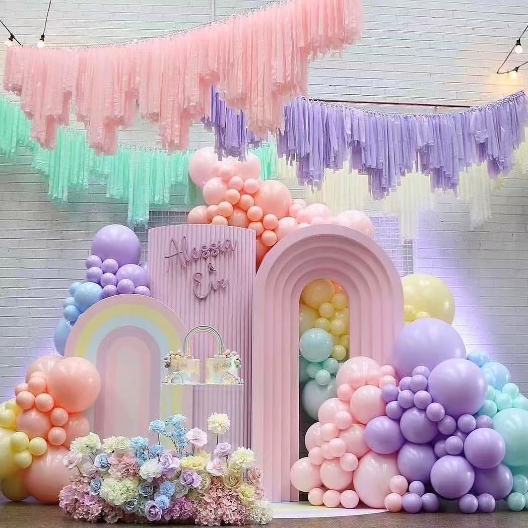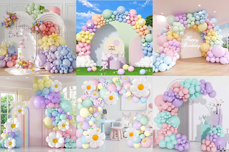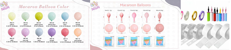 A macaroon színű léggömbök, a Garland Arch puha és álmodozó színei miatt népszerű. Az egész készlet 12 szelíd macaroon színre összpontosít. Macaroonvörös, macaroon kék, makaroon lila és más színekkel rendelkezik. Minden szín friss és romantikus megjelenést hoz.