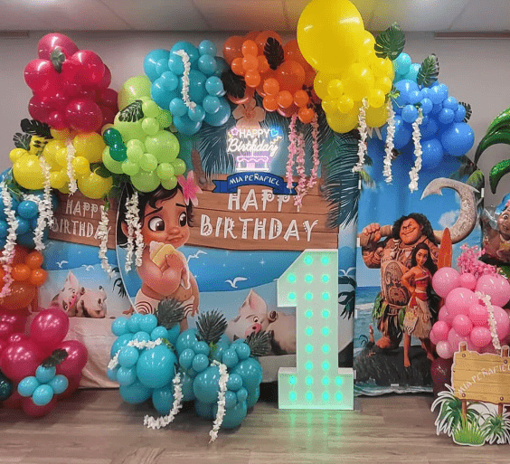 A Moana ballon ív az óceánkék, a strandarany és a szigetzöld színrendszerét alkalmazza, amely tökéletesen visszaadja a jelenet hangulatát az "Ocean Wonderben. A három szín összefonódik és megkülönböztethető, így a résztvevők úgy érzik, mintha egy álomszigeten lennének a Csendes-óceán déli részén, és gyorsan beilleszkednek az esemény tematikus atmoszférájába.