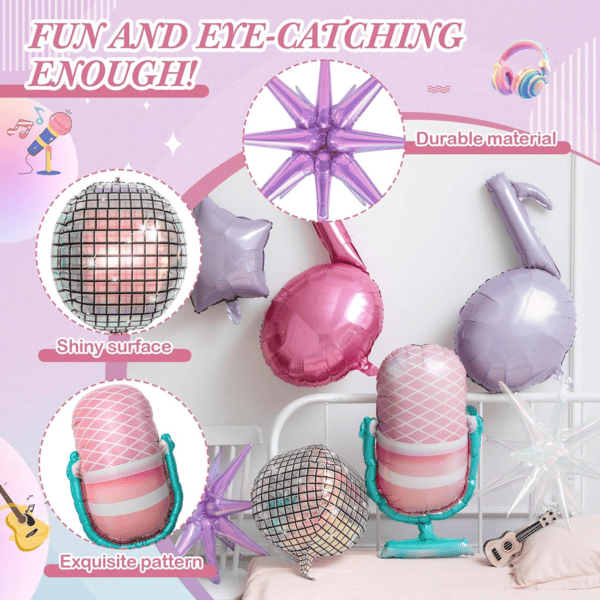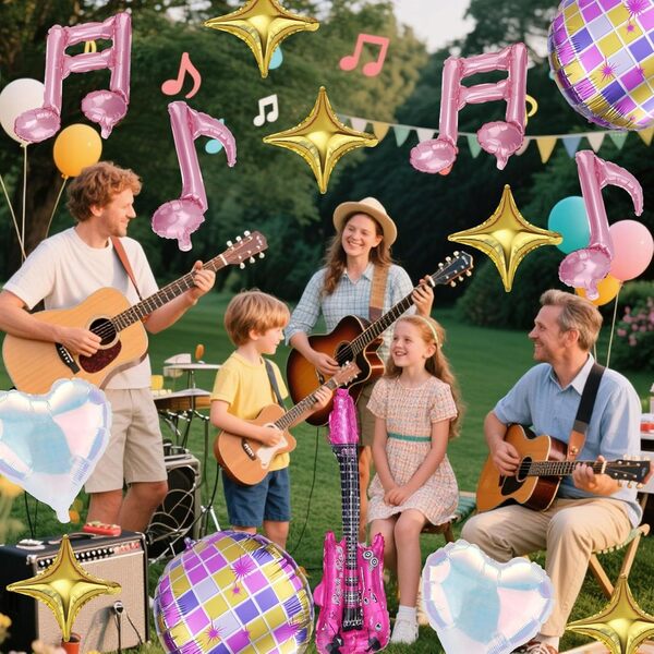 Nincs más művészetnek akkora befolyása és ereje, mint a zenének. Nemzedékek és kultúrák értékelik és értékelik továbbra is a szenvedélyt. Különféle hangszerek, például gitárok, basszusgitárok, zongorák és még sok más átalakították azt, amit zenének tekintünk. Mások az érzelmeket és ritmusokat ábrázoló hangjegyekre gondolnak. Koncert témájú ünnepségekre,zenefólia lufiadjunk hozzá egy fantasztikus díszítő elemet. Elmerülésre ösztönöznek, és bárhol zenétől és előadóművészettől vibráló színpaddá változhatnak. Elmesélnek egy történetet. Jelleget és értéket adnak egy olyan eseményhez, amely egyébként eseménytelen lenne.