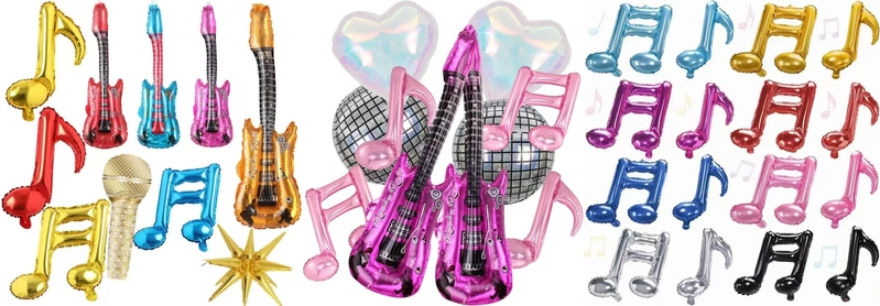 Zene fólia lufi füzér készlet:Akár színes, akár fekete-fehér, ennek a készletnek nagyon erős kifejezőereje van. A fóliás léggömbök mérete meghaladja a 18 hüvelyket. A kívánt hatás alapján választhat.