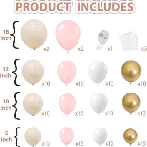 A rózsaszín bézs fehér léggömbív készlet mennyisége körülbelül 144 db, és az adott mennyiség az Ön igényei szerint testreszabható. Legyen szó latex léggömbről vagy fólia léggömbről, értékesítési menedzsere a legjobb szolgáltatást fogja nyújtani.