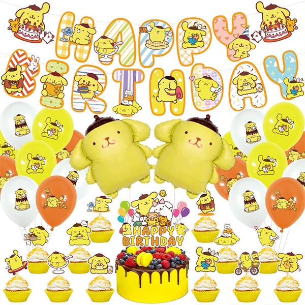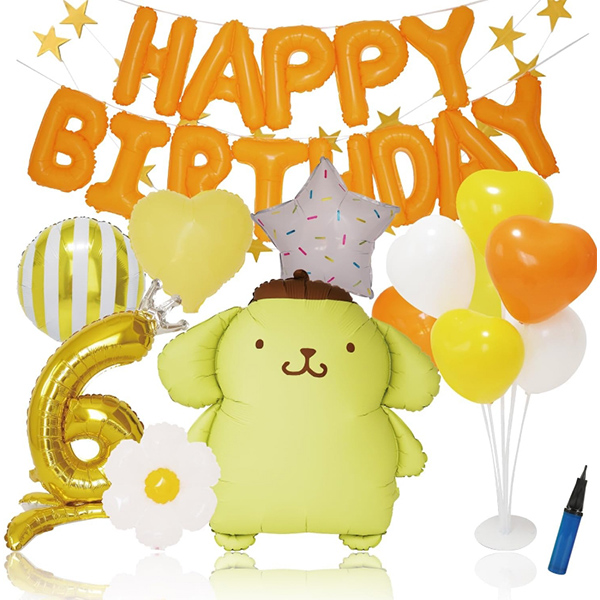 A NiuN® Balloon Factory a PomPomPurin nyomtatott latex léggömbhöz egy partikészletet is párosított, amely tartalmazott egy boldog születésnapi transzparenst, tortafedelet, PomPomPurin nyomott latex léggömböt, cupcake fedőt és még sok mást. Az ezeken a dekorációkon lévő képek színesek, és környezetbarát nyomtatási technológiát alkalmaznak, hogy hatékonyan felhívják magukra a figyelmet és fokozzák a parti látványát. Ezt a dekorációs készletet úgy tervezték, hogy könnyen összeszerelhető legyen, anélkül, hogy sok időt ráfordítana, és szórakozhat a gyerekekkel. Könnyedén felakaszthatja a születésnapi transzparenst a mennyezetre vagy a falra, a transzparens színes, a léggömb pedig könnyen felfújható. A tortadíszek gyönyörűek. Ezekkel a születésnapi parti kellékekkel pillanatok alatt elindíthat egy csodálatos születésnapi ünnepséget.