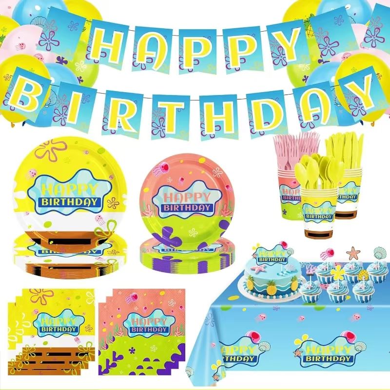 A gyerekek partijainál a Spongyabob asztalkészlet szórakoztató és hasznos választás. Híres karakterekkel rendelkezik, mint a SpongeBob és Patrick, mint a fő formatervezés. A készlet lemezekkel, papírpoharakkal, szalvétákkal és edényekkel érkezik. A tányérok Spongyabobot mutatnak egy nagy mosollyal, Patrick pedig vicces arccal. A formatervezés hozzáadja a medúzát, a tengeri moszatot és a kagylókat, hogy tengeri stílusot teremtsen. A színek fényesek és gazdagok. A papírpoharak és a szalvéták ugyanazt a témát követik. Az egész asztal tele van óceáni szórakozással. Az asztali edények biztonságos és öko anyagokat használnak. Ez egy aranyos stílust tart, és hasznos is. A születésnapi partikhoz, a témájú rendezvényekhez vagy a családi étkezéshez illeszkedik. A készlet boldog „bikini alsó ünnepet” készít a gyerekeknek, és egyszerű és kiváló minőségű parti lehetőséget kínál a szülők számára.