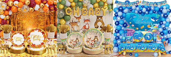 A partik a Niun® papírasztal elsődleges felhasználása. A párosítás egy témájú ballonfüzérrel javíthatja a témát. Minden ballon koszorúnak megfelelő témája van, és különféle színeket kínál, hogy tökéletesen összehangolhassa a különféle papírparti asztali edényekkel. A papír asztali edények párosítása a megfelelő témájú ballon koszorú stílusokkal káprázatos partit hoz létre!