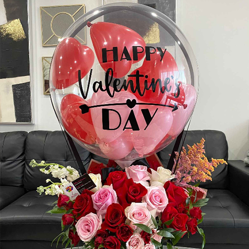 Létrehoztunk egy Valentin-napi csokor bobo ballont hőlégballon formájú matricákkal a testén. Párosíthatod a gyárunk által gyártott léggömbtöltő géppel, rakhatsz a lufiba rózsaszín rózsákat, örök csokrokat vagy kedves babákat, a díszdobozba pedig romantikát, meglepetést. Valentin-napi meglepetés ajándékként párodnak vagy asztaldísznek ez a Valentin-napi bobo lufi ajándék és otthoni dekoráció is egyben, teljes hangulattal.