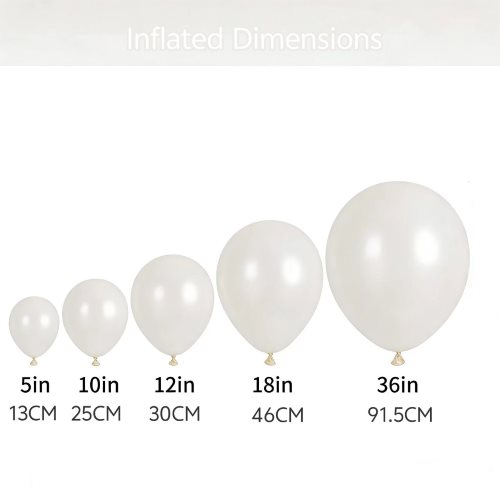 Raktáron lévő normál méretű fehér gyöngy színű léggömbök: 5,10,12,18,36 hüvelyk (kerek). Egyedi méretek 10-36 hüvelyk között kaphatók, valamint egyedi szív alakú gyöngyházfehér léggömbök is. MOQ alkudható.